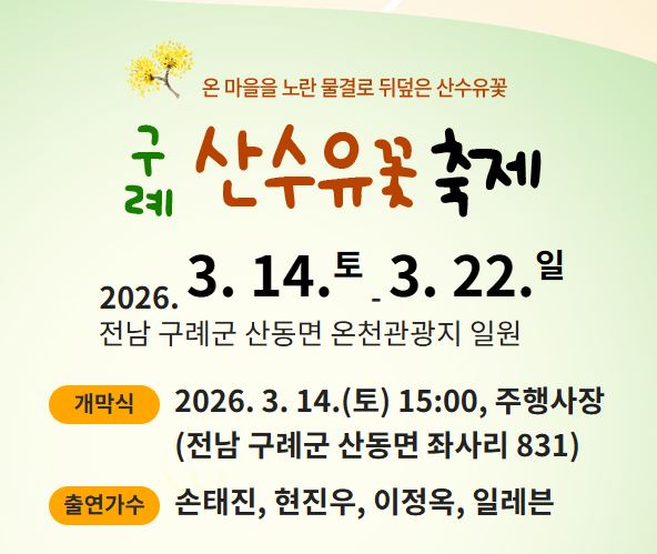 전국에서 가장 먼저 봄을 알리는 축제로, 매화와 벚꽃보다 한 발 앞서 산수유꽃이 만개해 상춘객들의 발길이 이어집니다.
