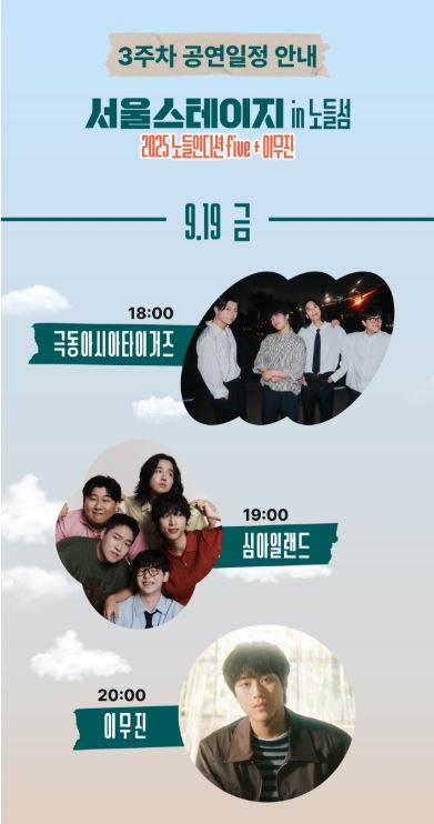 극동아시아타이거즈의 실험성, 심 아일랜드의 서정성, 이무진의 대중성은 각기 다르지만 한데 어울리며 서울의 가을밤을 빛낼 예정입니다