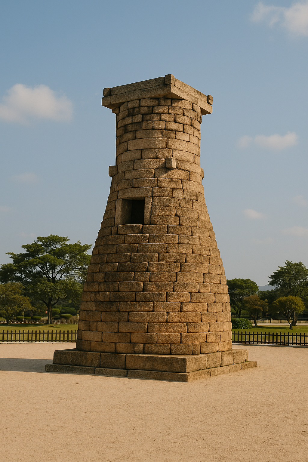 첨성대의 또 다른 가치는 바로 ‘통일신라 건축기술’에 있습니다. 1,300년이 넘는 세월 동안 원형을 잘 유지하고 있다는 사실만 봐도 그 시대 기술이 얼마나 정교했는지 알 수 있죠. 첨성대는 단순한 돌탑이 아니라, 원통형 곡선을 이용해 하중을 분산시키고, 돌을 짜 맞춘 구조로 내구성을 높였습니다. 특히, 밑부분은 네모반듯한 기단 위에 원형 벽체를 세운 형태로, 상부로 갈수록 폭이 조금씩 줄어들어 구조적으로도 매우 안정적입니다.
