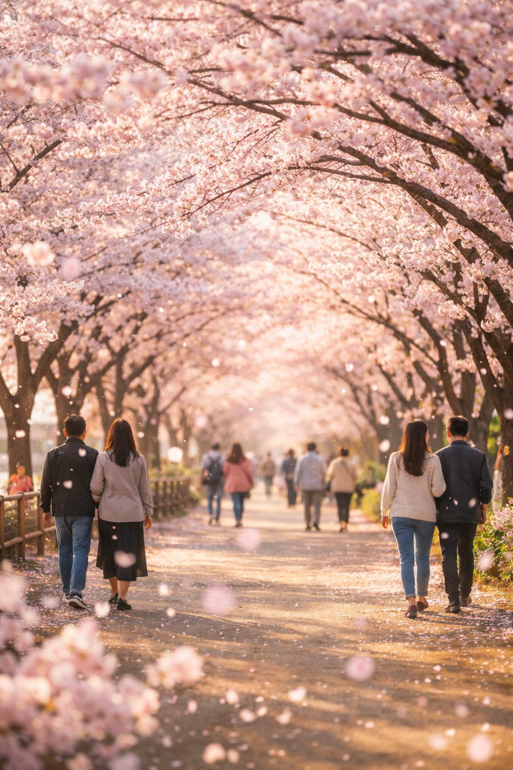 사랑하는 사람들과 함께 벚꽃이 흩날리는 길을 걷는 순간은 오래도록 기억에 남는 봄 추억이 될 것입니다.