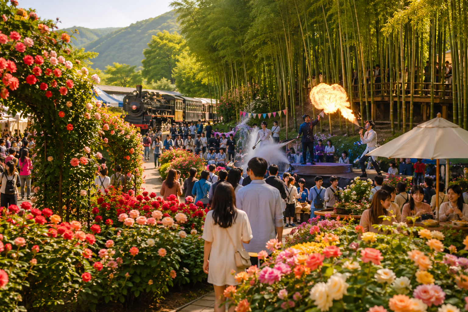 1,004종 세계 장미, 증기기관차 체험, 로즈 카카오 마켓