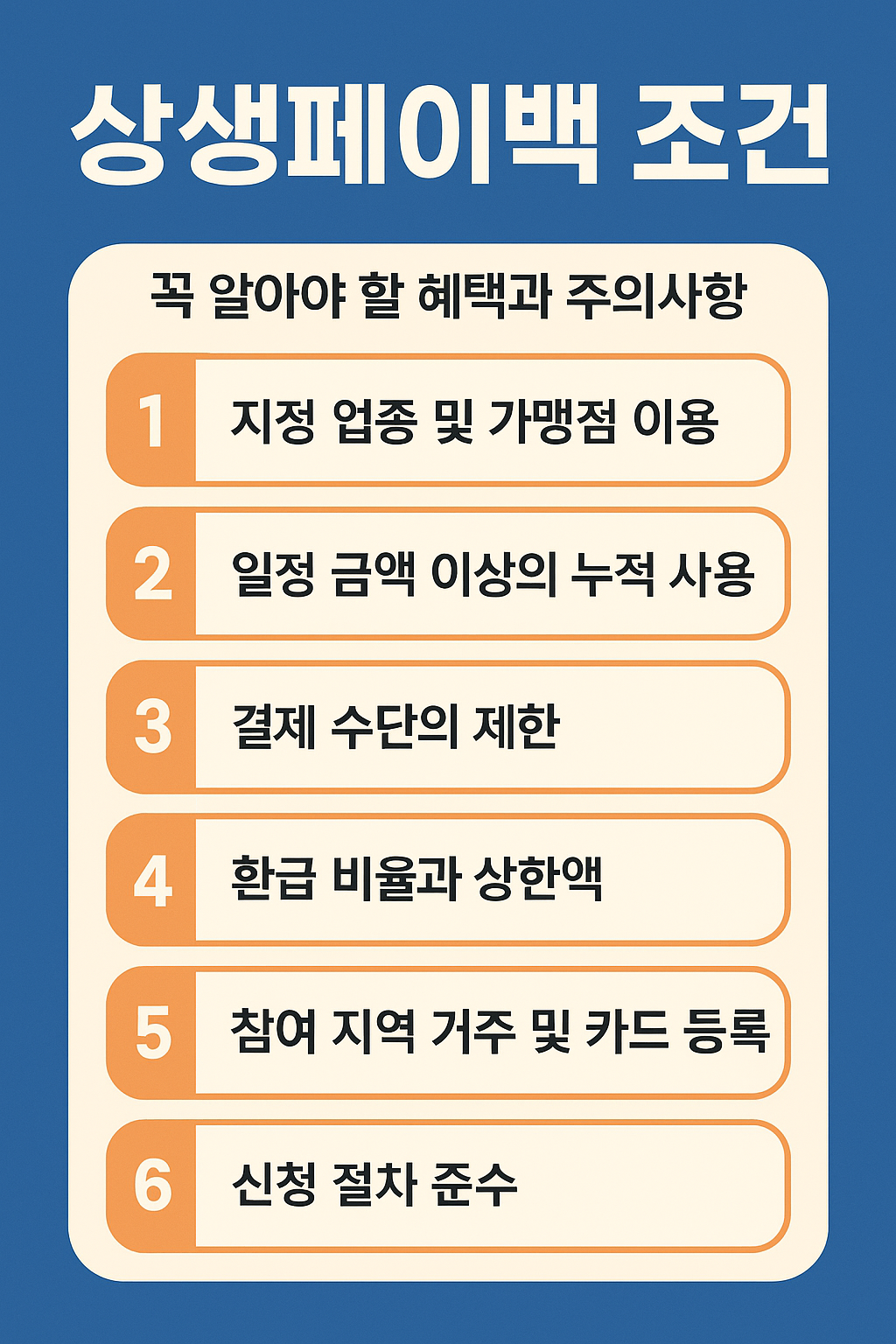 - 미리미리 확인하기: 상생페이백 누리집에서 실적 현황을 주기적으로 확인하는 습관을 들이면 좋습니다. 또한, 어떤 매장이 인정되는 가맹점인지도 미리 확인하고 소비하세요.